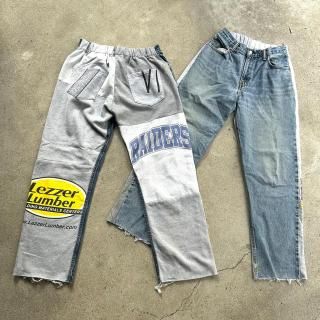 Rebuild the fabric DENIM&SWEAT Switching EASY PANTS リメイク デニムスウェットパンツ