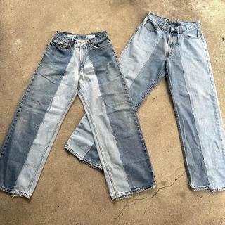 Rebuild the fabric Docking DENIM BAGGY PANTS リメイク デニム バギーパンツ SIZE Medium