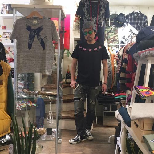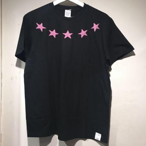 HOSU ホス ROUND STAR 手刺繍PRINT T-SHIRT BLACK/PINK