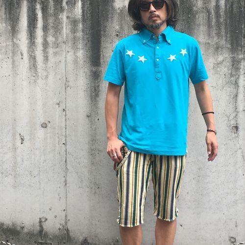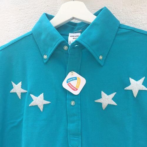 HOSU ポロシャツ スター手刺繍 鹿子ポロシャツ TURQ
