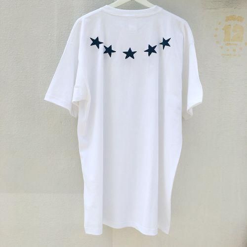 人気のスター手刺繍プリントにワンピースTeeが登場! ふんわりBIGサイズのカットソー生地なので、 軽く着用頂ける一枚です。 近くで見ても、リアルな刺繍風プリントが、 ネック周りのデザインが素敵ですね。 メンズも、ビッグTとしてオススメしたいですね。 Freeサイズ 着丈86cm 身幅63cm 肩幅60cm