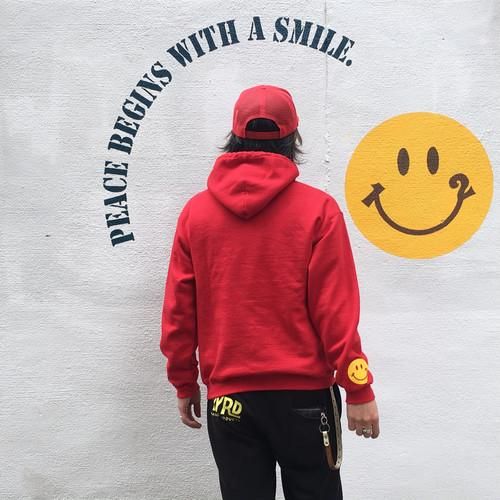 #12 SP LIMITED HOODIE RED 当店CaptainsHelmへ初の別注アイテムです。 ご要望の多かったREDパーカーに、WHITEロゴプリント。 袖に、当店の12スマイルをプリントして頂いたスペシャル仕様。 当店の2周年に華を添えて頂きました。 (Model T176cm/ : M size着用) ※12/9店頭販売開始となります。 サイズ S:身幅51cm 着丈65cm 裄丈81cm M:身幅53cm 着丈68cm 裄丈83cm L:身幅56cm 着丈70cm 裄丈85cm
