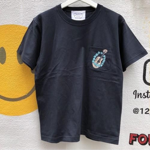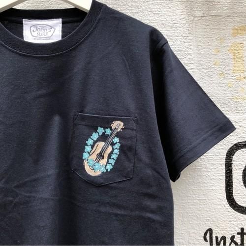 JOHN'S SURF ジョンズサーフ flower&guiter ハンドペイントTシャツ NAVY