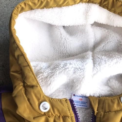 Champion KIDS FULL ZIP JACKET 素材: ポリエステル100% 大人顔負けのアウトドアテイストなフルジップJKT。 柔らかい内側のボアフリースで、保温性&着心地もバッチリ。 サイズ:130cm 身丈48cm