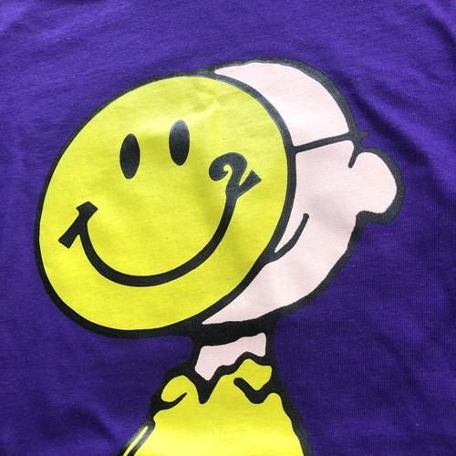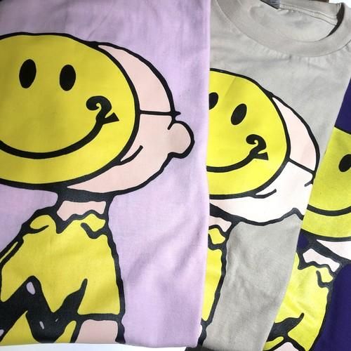 2021SS GW Special ITEM 12スマイルビッグフェイス前後プリント オリジナル Tシャツ(バックプリント有り)。 大判プリントがお得意のVESTAに制作依頼致しました。 シルクスクリーンの技術が詰まった1着と言えます。 過去最高のサイズ感のプリントがインパクト絶大です。 こちらは、初となるバックプリントも。 フロントとリンクする後ろ姿、文字も裏側です。 5.3オンスの程良い肉厚で柔らかい質感のボディを使用しております。 PURPLE、L,PINK、L,BEIGE 拘りの3色展開、サイズは、L のみとなります。 私の着用画像で確認できるように、それほど大き過ぎないので、 女性のビックシルエットにもオススメの1枚です。 ※こちらは、前後プリントバージョンです。 SIZE L (175CM) 身幅53cm 身丈73cm 袖丈20cm 素材 綿100% 176cm66kgで、3色共にL着用。