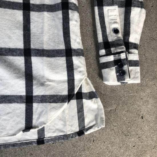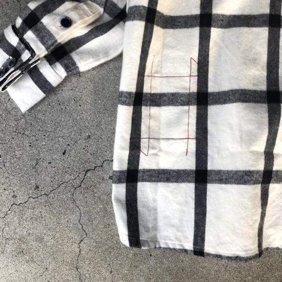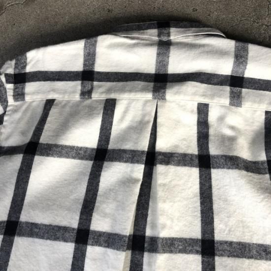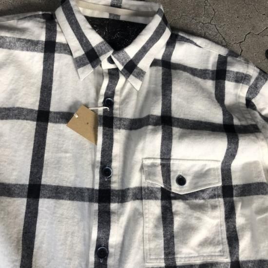 Burnout -バーンアウト 『21AW collection』 ビッグシャツ 上品な30/2シャギーチェックネル生地を使用。 袖口はWカフスでドレッシーに、胸ポケットはワークテイストに、 ポケット下にロゴ刺繍。 ビッグサイズの絶妙なサイズ感のシャツです。 ■Color #Whiteチェック ■Material:C-100% 176cm67kgで、Mサイズ着用。