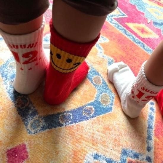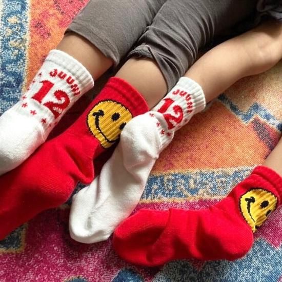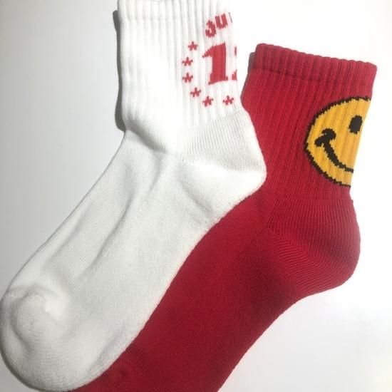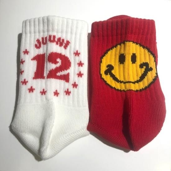 7th Anniversary Special Socks 12 × BILLY BUDDSKY ビリー バダスキー 12Logo&12Smile 当店12の7周年を記念して、ソックスブランド"Billy Buddsky"さんへ別注依頼。 白ベースは赤で12ロゴ、赤ベースは12スマイルのアシメで一足セット。 色揃えたい方は、是非、二足お求めを。 程よい肉厚感、ヒール部のアクセントデザイン。 ユニセックスの1サイズなので、ギフトにも是非。 QUALITY■コットン69% ポリエステル19% ナイロン10% ポリウレタン2% ■SIZE■24cm〜28cm(UNISEX) ■LENGTH■20cm ■WIDTH■8.5cm