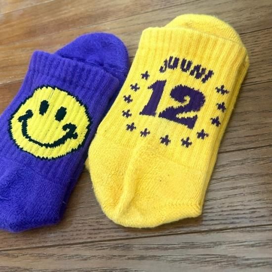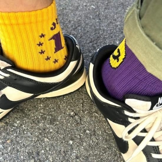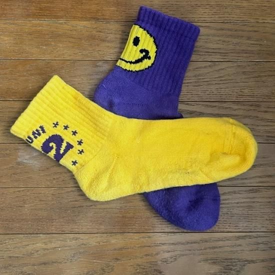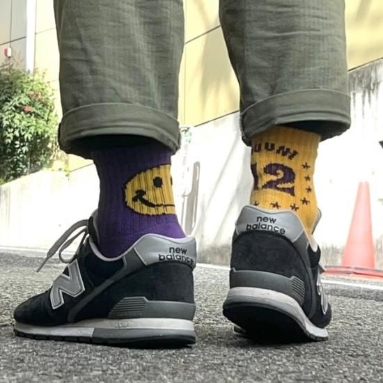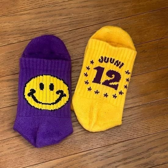 第4弾 Special Socks 12 × BILLY BUDDSKY ビリー バダスキー 12Logo&12Smile 好評につき待望の第4弾、ソックスブランド"Billy Buddsky"さんへ別注依頼。 今回は、黄色と紫色のアシメカラー、所謂レイカーズカラー。 LAを連想させる魅力的な配色なので、スタイリングのアクセントにもGOOD。 色揃えたい方は、是非、二足お求めを。 程よい肉厚感、ヒール部のアクセントデザイン。 ユニセックスの1サイズなので、ギフトにも是非。 QUALITY■コットン69% ポリエステル19% ナイロン10% ポリウレタン2% ■SIZE■24cm〜28cm(UNISEX) ■LENGTH■20cm ■WIDTH■8.5cm