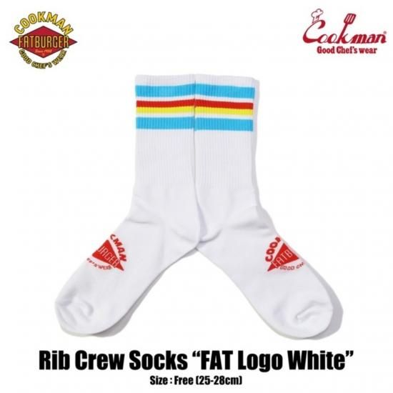 Cookman クックマン ソックス Rib Crew Socks FAT Logo White