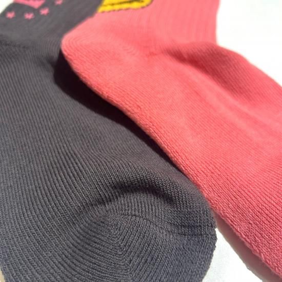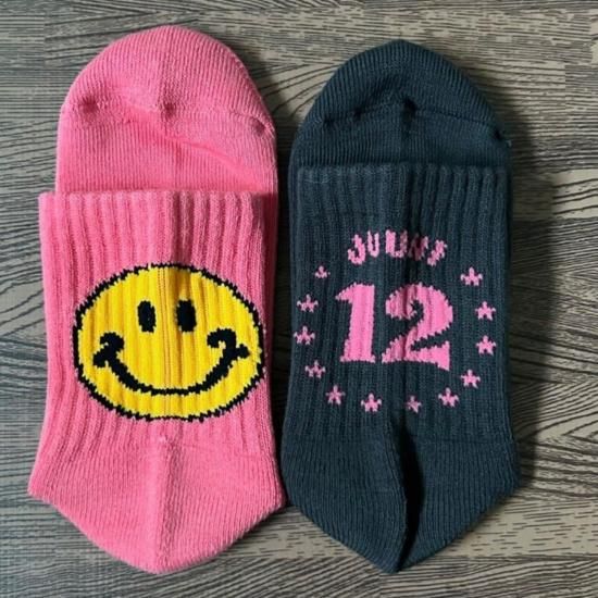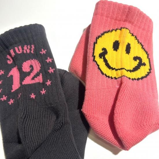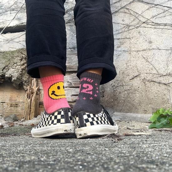 第5弾 Special Socks 12 × BILLY BUDDSKY ビリー バダスキー 12Logo&12Smile 好評につき待望の第5弾、ソックスブランド"Billy Buddsky"さんへ別注依頼。 今回は、チャコールグレーとピンクのアシンメトリー。 色揃えたい方は、是非、二足お求めを。 程よい肉厚感、ヒール部のアクセントデザイン。 ユニセックスの1サイズなので、ギフトにも是非。 QUALITY■コットン69% ポリエステル19% ナイロン10% ポリウレタン2% ■SIZE■24cm〜28cm(UNISEX) ■LENGTH■20cm ■WIDTH■8.5cm