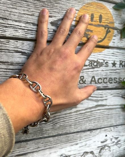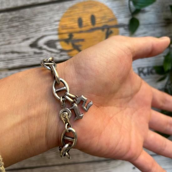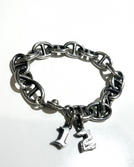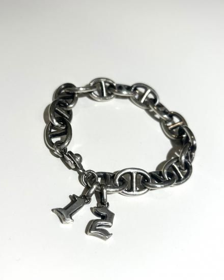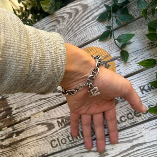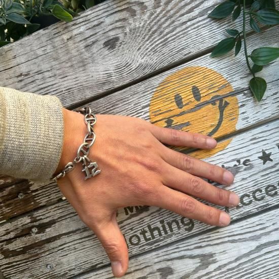 待望の別注BRACELETが遂に完成致しました。 鎌倉発信の"VIN'S"に、1と2のトップを製作依頼。 ブランド人気のマリンチェーンに、 ドロップするチャームとして、12を。 経年変化を楽しめる真鍮素材なので、魅力的な価格です。 男女問わず、スタリイングのアクセントに。 袋付きなのでギフト候補に、是非。 素材:BRASS SILVERコート ANTIQUE仕上げ