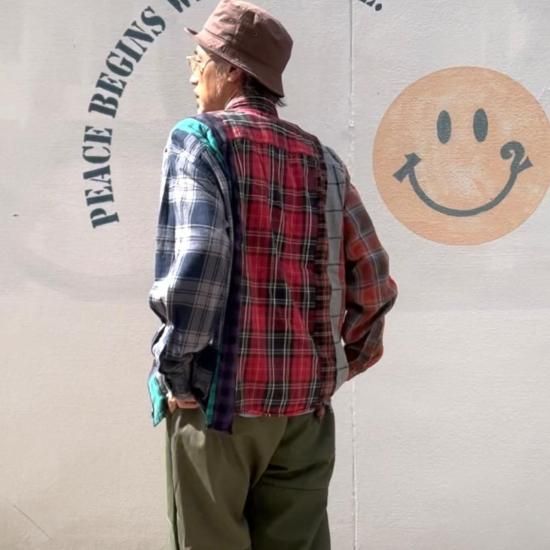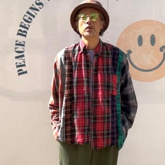 Rebuild the fabric USED REMAKE 7 in 1 Flannel Check Shirt リメイク シャツ USEDのフランネルシャツを、 贅沢に7枚繋ぎ合わせて、1枚のシャツにリメイク。 今求められる絶妙なワイドシルエットのFreeサイズ。 縫製も素晴らしい作品です。 世界に一つの魅力がありますね。 176cm68kgでFreeサイズ着用! Rebuild the fabric (リビルド ザ ファブリック) 古着や古布を用いて再構築したアイテムという意味で『Rebuild the fabric』と表現しているリメイクアイテム。ファッションという特殊なジャンルにおいてサスティナブルな商品の提案とモノづくりをテーマに展開。古着や古布を中心にアップサイクルすることで、新しい命と個性を吹き込み、唯一無二に再生したアパレルアイテムを提案します ※ こちらはUSED商品を使用しておりますので、古着本体の経年による傷や汚れ、色むらなどがございます。