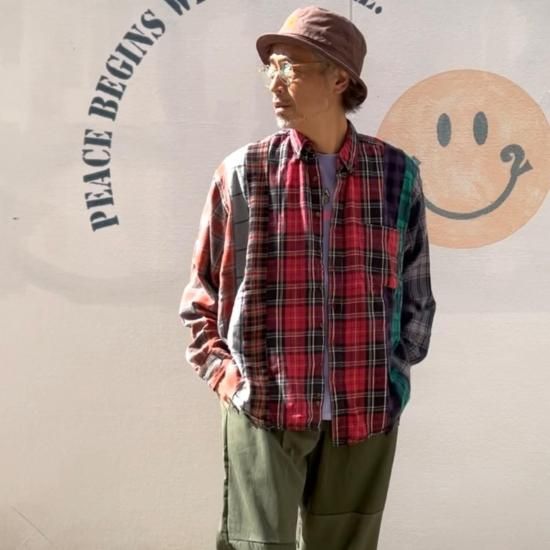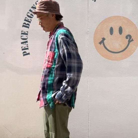 Rebuild the fabric USED REMAKE 7 in 1 Flannel Check Shirt リメイク シャツ