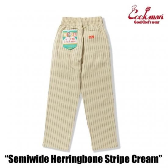 Cookman クックマン シェフパンツ Chef Pants Semiwide Herringbone Stripe Cream