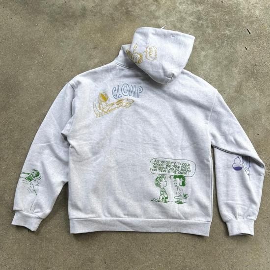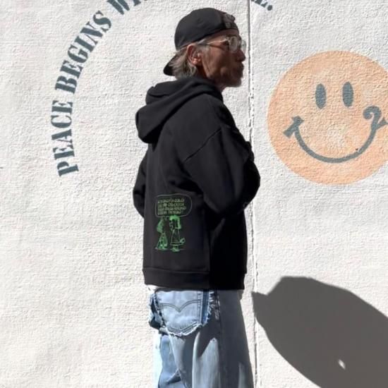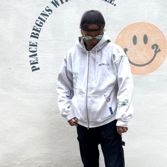 TP LINUS VS SNOOPY ZIP PARKA / PEANUTS 裏起毛スウェット ジップパーカー スヌーピーのZIPパーカーがついに登場! フロントとバックにはカラフルなイラストが散りばめられ、 ポップで遊び心のあるデザインに仕上がっています。 更に、男女問わず、着易いユニセックス仕様で、 カジュアルコーデにぴったり! ラバープリントの中に、刺繍も加えた拘りのアイテム。 サイズ M 胸囲 88-96cm 身長165-175cm L 胸囲 96-104cm 身長175-185cm 本体:コットン60% ポリエステル40% --- Sequence by B-ONE-SOUL: Sequence is the key, for we all be as one. Sequence by BOS(シーケンス・バイ・ビーワンソウル)は、ストリートアパレル・レーベル「B ONE SOUL(ビーワンソウル)」が提唱する“連帯”(=B(E) as ONE)の精神をより強固に昇華させる、日本を拠点とするニュー・グラフィックレーベル。 人々の連帯をミュージック・シンセサイザーのワンフレーズ=Sequenceになぞらえたネーミング。 現代社会の中で、生まれた国や性別、思想などあらゆる垣根を超えた連帯の実現のため、相互への理解を進めるべく活動を行う。 この新しいレーベル、Sequence by BOSのデザインソースは、国境を超えて届く国際運送便であったり、楽器と共に世界中を旅してワールドツアーを行うロックバンド、はたまたローカルのコミュニティを活性化させるべく写真や切抜きを貼り合せて作られたDIY(Do It Yourself)精神あふれる出版物など、Soulを感じさせるクリエイティビティー、そして潮流を生み出している人と物の動きそのものである。