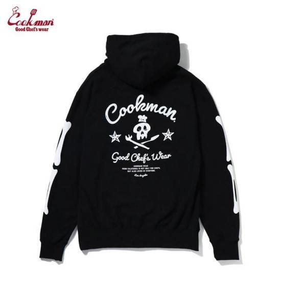 Zip Hoodie Cookmanが生まれたカリフォルニアは、年間を通して温暖で過ごしやすいですが、特に夏と冬で日中と朝晩の気温差が大きくなるのが特徴です。 そんなカリフォルニアの気候にかかせないZip Hoodieは、ジャケットやコートのようにアウターとして羽織ったりすることはもちろん、アウターの下にインナーとしても着回しできる魅力的なアイテムです。 裏がパイル地で、どんな季節にも大活躍間違いなしです! Design Skullシェフのboneデザイン。 袖部分には骨のデザインが施されており、パンツとのリンクコーデも楽しめます! グレーとブラックの2色展開です。 素材(マテリアル) 綿:100% 予告無く仕様変更する場合が御座います サイズ 着丈 身幅 肩幅 袖丈 ユニセックスM 70cm 60cm 52cm 63cm ユニセックスL 73cm 63cm 55cm 64cm ユニセックスXL 76cm 66cm 58cm 65cm値は数点計測したうちの平均値です。1〜2cm前後の個体差が出る場合もございます。(平置き計測)