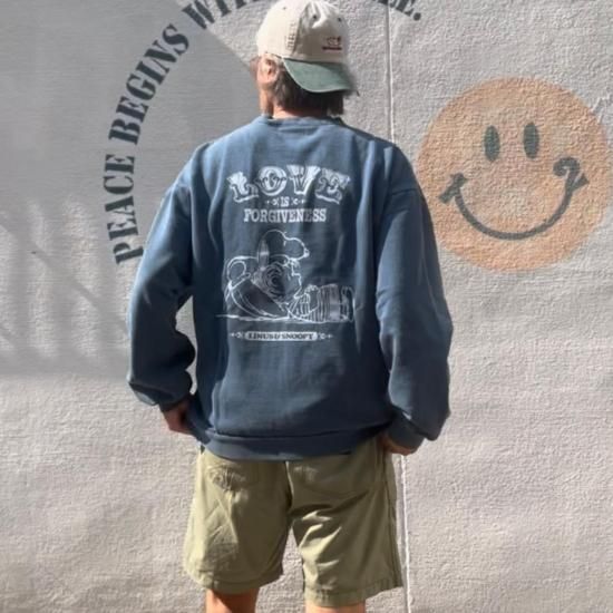 【SEQUENZ】 シークエンズ TP LOVE IS ... C/N SWEAT / スウェット ワイドシルエット PEANUTS (BLUE) LINUS 今回のデザインは、ヴィンテージ柄をオマージュして制作し、 定番のスヌーピー柄とは違い、バックプリントになっています。 更に、スヌーピーだけでなく、カラーにより異なる、 人気キャラクター達との名場面を細部まで忠実に落とし込んだデザインが魅力です。 【素材】 パウダーブリーチ加工 CVC裏起毛320g/m しっかりとした厚みのある質感としなやかさを兼ね備えた安定感のある仕上がり。肌にさらっと触れる優しい着心地で、シーズンレスで大活躍。素材にはコットンとポリエステルをバランス良くブレンドした裏毛スウェット生地を採用しました。裏毛のループと程よい生地の厚さが特徴的なスウェット生地は伸縮性が良く、ふっくらとした柔らかな仕上がりが特徴的です。 サイズ M 胸囲 88-96cm 身長165-175cm L 胸囲 96-104cm 身長175-185cm 素材 コットン60% ポリエステル40% --- Sequence by B-ONE-SOUL: Sequence is the key, for we all be as one. Sequence by BOS(シーケンス・バイ・ビーワンソウル)は、ストリートアパレル・レーベル「B ONE SOUL(ビーワンソウル)」が提唱する“連帯”(=B(E) as ONE)の精神をより強固に昇華させる、日本を拠点とするニュー・グラフィックレーベル。 人々の連帯をミュージック・シンセサイザーのワンフレーズ=Sequenceになぞらえたネーミング。 現代社会の中で、生まれた国や性別、思想などあらゆる垣根を超えた連帯の実現のため、相互への理解を進めるべく活動を行う。 この新しいレーベル、Sequence by BOSのデザインソースは、国境を超えて届く国際運送便であったり、楽器と共に世界中を旅してワールドツアーを行うロックバンド、はたまたローカルのコミュニティを活性化させるべく写真や切抜きを貼り合せて作られたDIY(Do It Yourself)精神あふれる出版物など、Soulを感じさせるクリエイティビティー、そして潮流を生み出している人と物の動きそのものである。