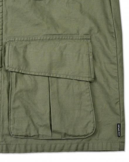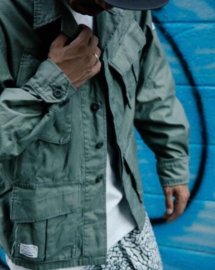 CAPTAINS HELM #UTILITY FATIGUE SHIRTS Product Features ・当時の古着を忠実にリメイクしたジャングルファティーグジャケット ・シャツとアウターの中間をイメージした絶妙なオンスの生地をチョイス ・身幅にゆとりを持たせ、短めの着丈がトレンドのシルエットを表現しています ・袖の太さを当時のままに残すことで、太めのボトムスとの相性も抜群 ・ワンウォッシュ加えることで、タグの質感や生地の張りを軽減することで、非常に着易いシャツジャケットとなっております ・COTTON 100% SIZE 肩幅 身幅 着丈 袖丈 M 48cm 59cm 70cm 63cm L 50cm 61cm 72cm 64cm XL 52cm 63cm 74cm 65cm ※物によって、若干の誤差 / 個体差が生じる場合がございますので 予めご了承下さい