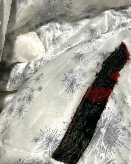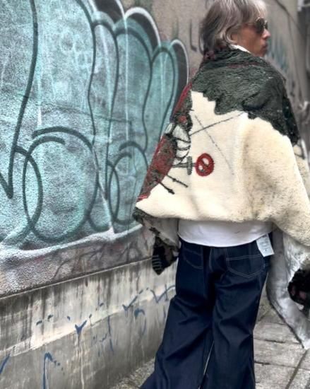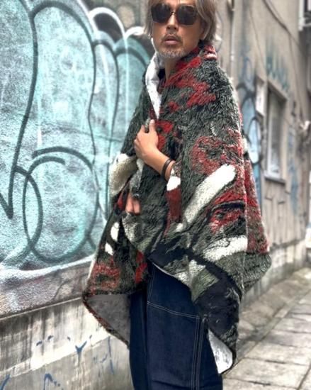 SEVESKIG セヴシグ Quad Pile Poncho Ver. RZ パイル生地 ポンチョ 『老人Z』のグラフィックをもとにボア素材に落とし込んだポンチョ型アウター。 立体感のあるパイル生地に加え、裏地には和柄のキルティングを使用。 ゆったりと羽織れるシルエットで、軽さと暖かさを両立しています。" POLYESTER 100% MADE IN JAPAN