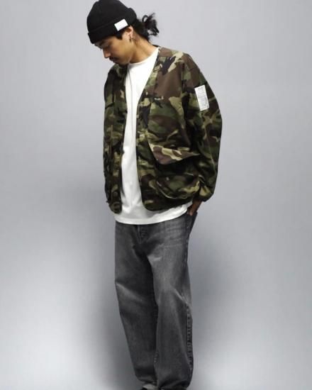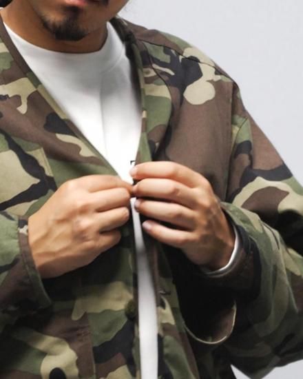 CAPTAINS HELM #WL CAMO HUNTING JKT Product Features ・古着のハンティングジャケットから着想を得た、ノーカラーカバーオールジャケット ・身幅にゆとりを持たせ、様々なインナーとのレイヤードが可能となっています ・帯電防止素材のサテン生地を裏地に採用し、スムースな着心地となっています ・バックサイドに付属したベルトで身幅のシルエット調整が可能 ・COTTON 100% SIZE 肩幅 身幅 着丈 袖丈 M 52cm 60cm 66cm 60cm L 54cm 62cm 68cm 61cm XL 56cm 65cm 70cm 62cm ※物によって、若干の誤差 / 個体差が生じる場合がございますので 予めご了承下さい