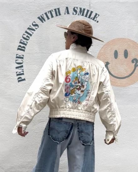 SEVESKIG Hopeful Spectrum Zip Shirt シャツ ジャケット "ミニマルなフロントデザインと、遊び心あふれるバックグラフィックの対比が印象的なジップシャツ。 背面のアートは、1930年代にウォルト・ディズニーが手がけた短編アニメーションシリーズ**「シリー・シンフォニー」**を彷彿とさせるタッチで描かれています。 このシリーズは、音楽とアニメーションを融合させた革新的な表現で知られ、のちのディズニー作品の礎となったもの。 今季テーマ 「TO BE TWISTED」 を、どこかノスタルジックでユーモラスな世界観に落とし込みました。 よく見ると、日本列島の形をモチーフにしたキャラクターやアイコンが散りばめられ、SEVESKIGらしいカルチャー愛とひねりの効いたユーモアが感じられます。 素材は軽やかで適度なハリのあるコットンベースを使用し、シャツとしてもライトアウターとしても活躍する汎用性の高い一枚です。" COTTON 100% MADE IN JAPAN