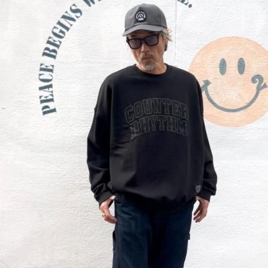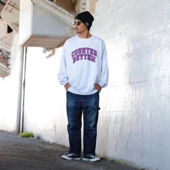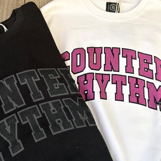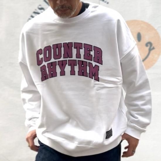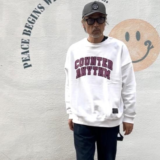 • COUNTER RHYTHM カウンターリズム COLLEGE SWEAT WHITE / PURPLE or BLACK / BLACK【裏毛】 ルーズスウェット