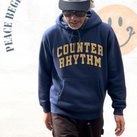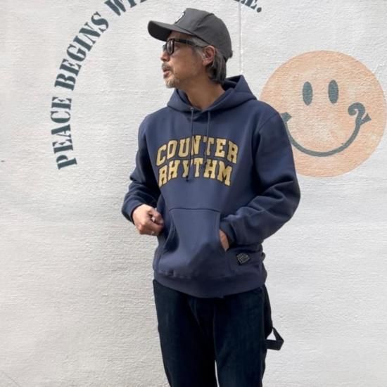COUNTER RHYTHM カウンターリズム COLLEGE HOODIE NAVY / YELLOW or NAVY / YELLOW【裏起毛】 スウェット パーカー