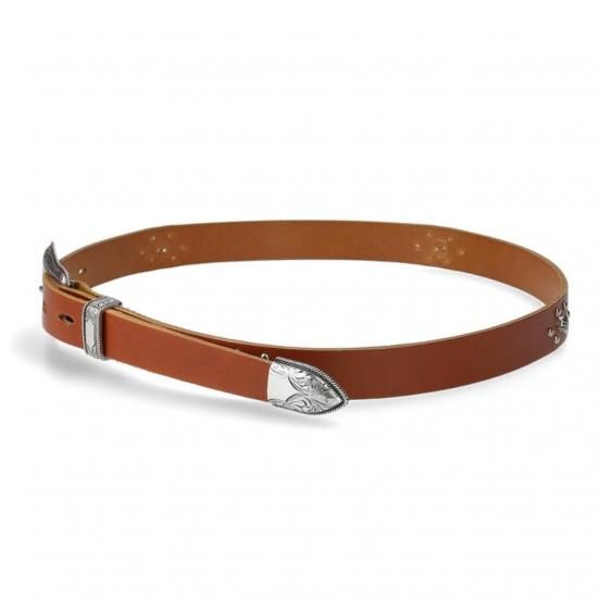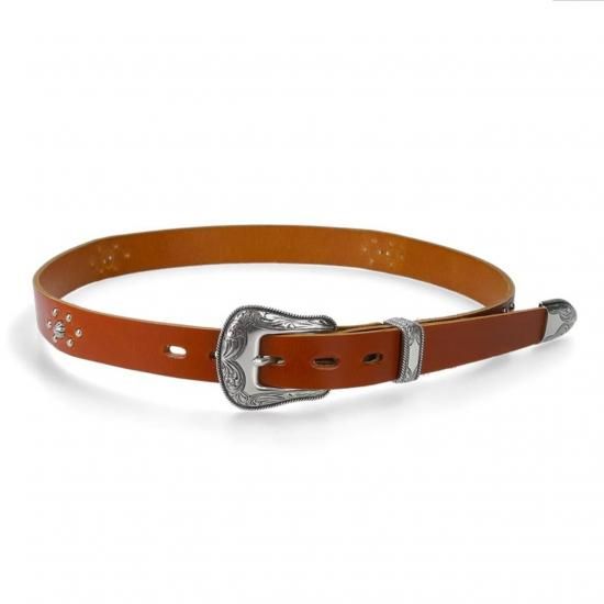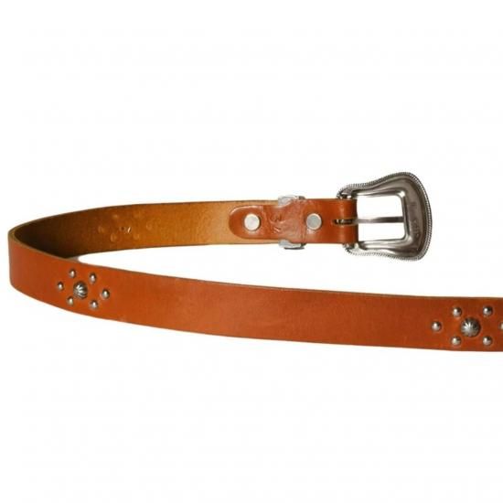 HTC / SD Belt #Western B Umbrella HTC別注のウェスタンベルトです。 Hollywood Trading Companyとの別注モデル、ウェスタンバックルベルト。 バックル、ベルトループ、剣先に装飾金具を取り付けた雰囲気ある1本。 1inch幅のベースに人気のアンブレラスタッズを組み合わせた定番モチーフのスタッズワークでシンプルに仕上げました。 コーディネートのポイントに良い仕事をしてくれます。 ぜひこの機会に。 ※革製品の性質上、衣服に色移りする場合があります。 ※レザーの色は天然素材の為、色ブレがございます。 天然革の特性上キズなどが目立ちやすくなっておりますが良品と判断したモノのみ発送しておりますので予めご了承ください。