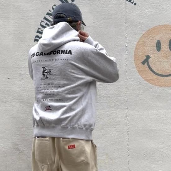THE ENDLESS SUMMER SWEAT PARKA / スウェットパーカー 映画のポスターにも採用された定番のシルエットデザイン、 よく見るとフレブルがプラスされているが特徴です。 背中はロゴプリント+フレブル部分は刺繍で表現。 シンプルながらもこだわりの詰まったデザインです。。 生地は拘りの詰まった日本製のオリジナルのヘビー裏毛生地を使用。ビンテージの風合いを追及し、表糸には洗い晒しの様な風合いが特徴のアメリカンコットンを使用、ドライなタッチがビンテージ感を演出します。度目を極限まで詰めた超厚手の生地ですが柔らかさも兼ね備え、保温性と着心地の良さを両立しました。 リラックスフィットのサイズ感は裾リブの伸縮性を上げる事でルーズになりすぎない仕上がりにしました。拘りの詰まったオリジナルスウェットは全てを日本製で仕上げた高コスパの高品質商品です。 アイテムサイズ 身幅 肩幅 着丈 袖丈 S 57 54 63 58 M 60 57 65 59 L 63 60 68 60 素材 COTTON 100% MADE IN JAPAN TES(TheEndlessSummer) 1964年制作以来50年以上経った今も、サーフィン映画の最高峰として評価が高い伝説のサーフ・ムービー「The Endless Summer」。 映画の世界観にOLD SURFとARTを織り交ぜ新しくも懐かしいリラックススタイルを提案していきます。